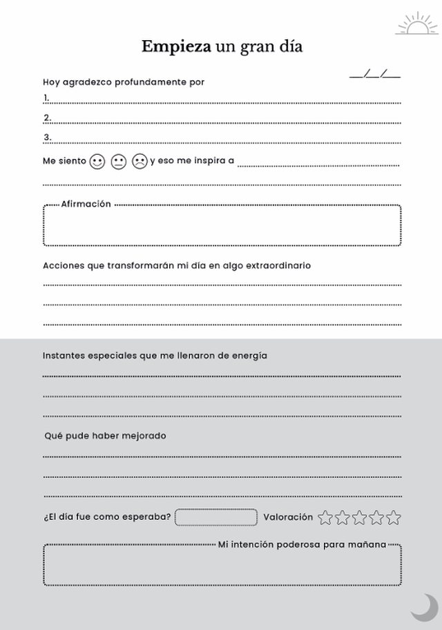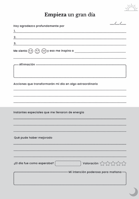 En este hermoso proceso vas a descubrir 32 páginas que puedes modelar y/o personalizar para crear mágicos y sorprendentes dias viviendo desde la gratitud y asi manifestar tus más grandes intenciones del alma.